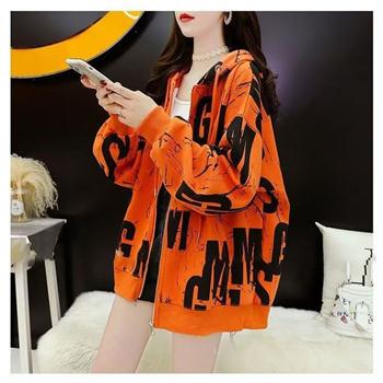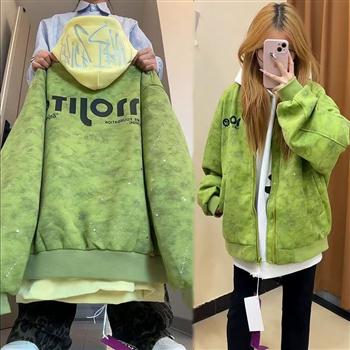 YF6493-(3色入内)原宿风长袖连帽抽绳拉链防风不规则字母设计胖MM显瘦大码卫衣