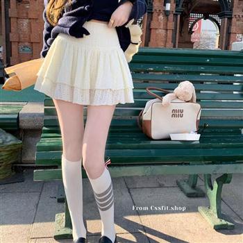 YF6586-图片色甜美时尚小可爱蓬蓬蕾丝裙 松紧腰A字纯色防走光短裙