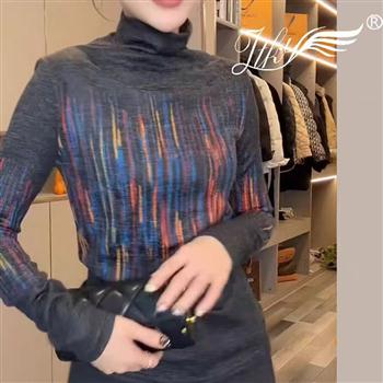YF6587-图片色2025韩版高级感渐变色高领弹力弹力修身显瘦针织秋冬新款上衣