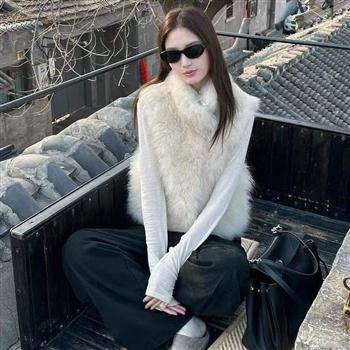 YF6603-(2色入内)冬季新款无袖堆领仿皮草立体感加厚系扣加厚保暖披肩背心