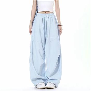 YF5007-(2色入内)原宿风抽绳松紧腰褶折设计阔脚裤 休闲百拱夏季新款长裤