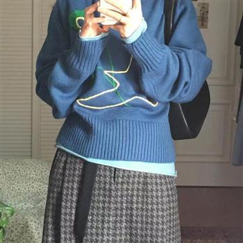 YF4227-图片色时尚秋冬圆领长袖花卉提花小众设计小心机加厚针织毛衣