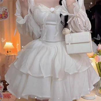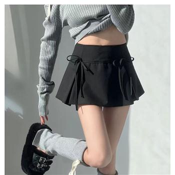 YF3802-(2色入内)时尚性感蝴蝶结系带A字低腰防走光内衬复古小可爱短裙