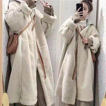 YF3791-图片色冬季加厚羊羔绒长袖拉链设计宽松大码中长款大衣外套