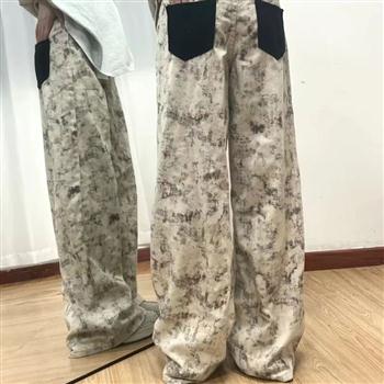 YF3792-图片色韩版复古扎染松紧腰直筒坠地感休闲百搭慵懒风长裤