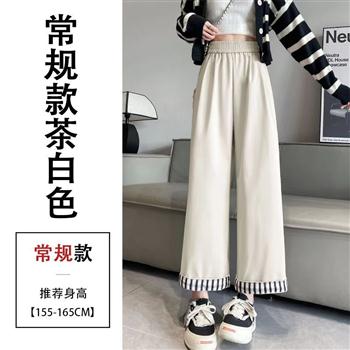 YF3804-(3色入内)时尚冬季毛呢直筒开叉小众设计感松紧腰拼接新款人字纹长裤