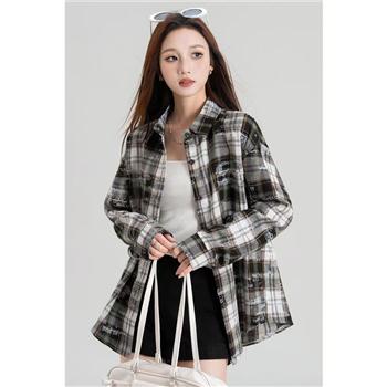 YF5914-(2色入内)韩版复古格子字母印花时尚个性宽松大码涂鸦洋气衬衣