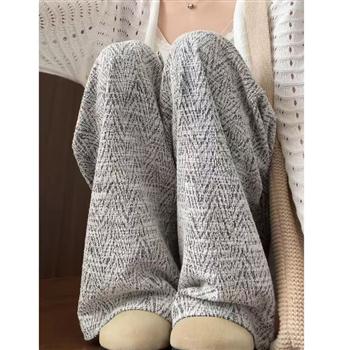 YF5918-(3色入内)2025秋冬绑绳高腰菱形提花抗绉柔软毛呢保暖加厚阔腿裤