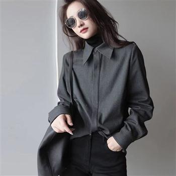 YF5921-图片色别致时尚精品长袖翻领宽松大码灰色小众设计感2025新款衬衣
