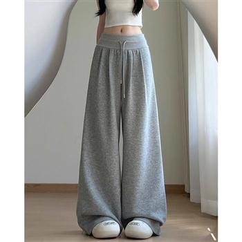 YF5922-(4色入内)港式绑绳高腰直筒坠地感阔腿复古运动休闲卫衣裤