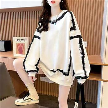 YF5925-(2色入内)港式慵懒风圆领长袖撞色设计感宽松大码个性涂鸦卫衣新款