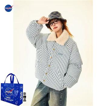 YF5928-图片色冬季羊羔绒翻领长袖条纹系扣加厚保暖蓝色坚纹复古棉袄外套
