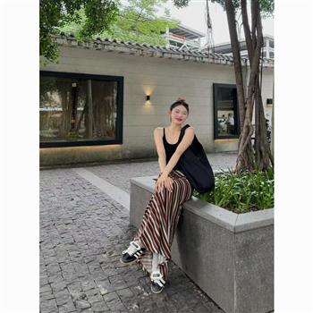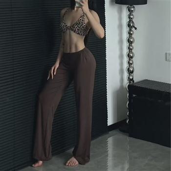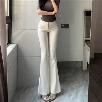 YF5896-(2色入内)韩版微喇叭系扣高腰包臀紧身显瘦休闲百搭辣妹长裤