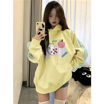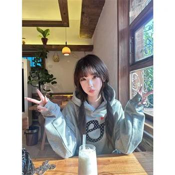 YF5894-(2色入内)学院风e字母印花长袖连帽宽松大码显瘦休闲卫衣潮