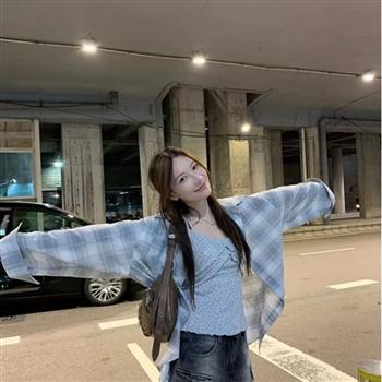 YF5900-图片色2025港式慵懒风长袖翻领格子衬衣 宽松大码学院风上衣
