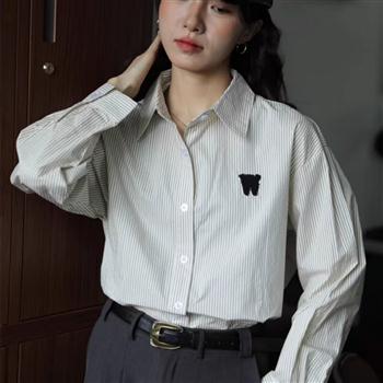 YF5452-图片色W字贴标慵懒风长袖翻领坚纹显瘦简约风刺绣春秋新款上衣
