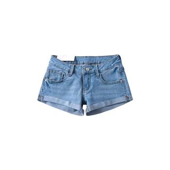 YF5455-图片色性感时尚超短弹力包臀低腰系扣卷边设计辣妹美式牛仔短裤