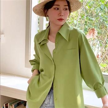 YF5464-图片色休闲时尚小清新绿色简约风长袖翻领宽松显瘦百搭春秋上衣