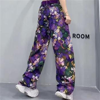 YF5483-图片色潮流新款系扣高腰碎花洋气阔腿休闲百搭慵懒风拖地裤