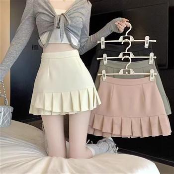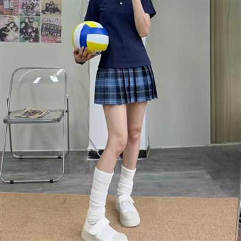 YF5491-(3色入内)韩版学院风高腰A字百褶防走光小可爱复古格子半身短裙