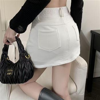 YF5472-(3色入内)夏季刺绣字母高腰弹力包臀纯色A字小众设计防走光短裙