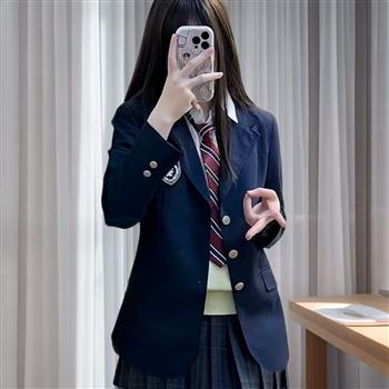 YF5414-(3色入内)JK制服控休闲学院风长袖三粒扣贴校徽设计修腰西装外套