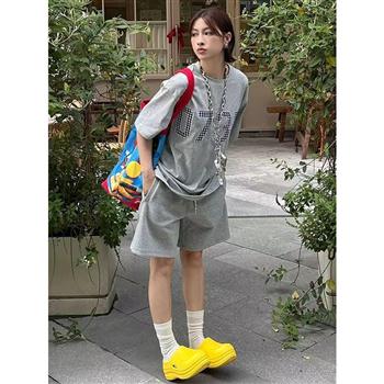 YF5416-图片色韩版字母印花小众设计宽松大码圆领短袖休闲百搭上衣