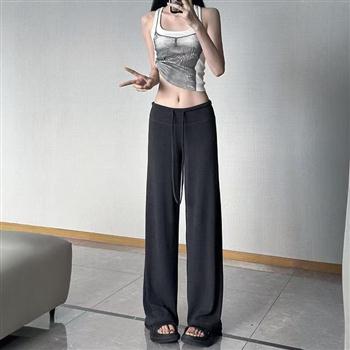 YF5417-(3色入内)港式抽绳高腰直筒坠地感薄款卫衣亲肤舒适休闲裤