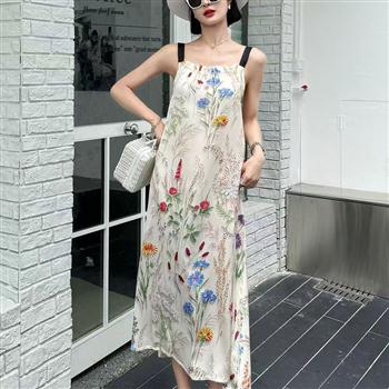YF5423-图片小清新露肩吊带碎花抹胸性感无袖宽松度假风优雅气质连衣裙