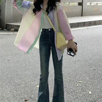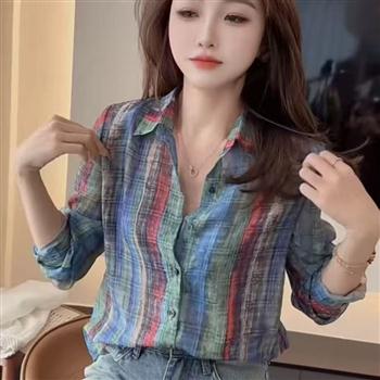 YF5425-图片色韩版春秋新款简约彩条纹长袖翻领宽松显瘦时尚休闲衬衫