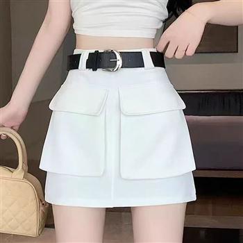 YF5441-(2色入内)夏装工装高腰A字外露工装口袋纯色百搭夏季短裙
