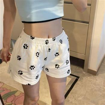 YF4495-图片色可爱小狗脚印花设计松紧腰阔腿裤 辣妹夏季宽松休闲五分裤