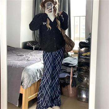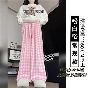 YF4438-(2色入内)港式复古格子裤 慵懒风休闲直筒大码显瘦坠地感长裤