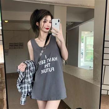 YF4425-(2色入内)港味1字字母印花无袖吊带宽松显瘦外穿休闲百搭背心上衣
