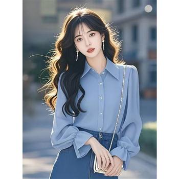 YF4436-图片色甜美时尚木耳边翻领系扣宽松显瘦简约轻奢大码雪纺衫