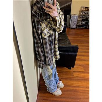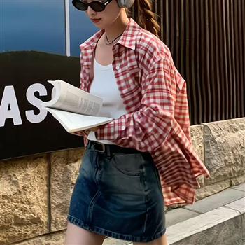YF4455-图片色港式复古格子衫 慵懒风加大码宽松显瘦ins衬衫潮衣新款