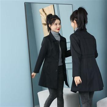 YF4153-(2色入内)优雅时尚西装领束腰修身显瘦毛呢保暖小个子风衣大衣
