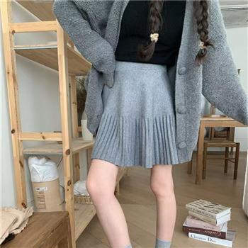 YF4159-(3色入内)秋冬针织收腰A字弹力百褶裙 时尚百搭纯色针织半身裙