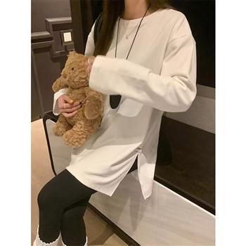 YF4172-(2色入内)加绒开叉设计圆领胖MM显瘦白色简约百搭大码T恤
