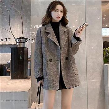 YF4175-图片色冬装简约风长袖系扣毛呢休闲轻奢西装外套 英伦风小西装