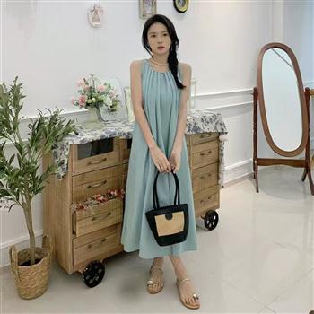 YF4178-图片色性感时尚无袖露肩褶折A字宽松藏肉显瘦简约风背心裙
