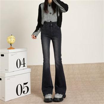 YF4171-图片色港味双纽扣微喇叭设计洗水复古气质ins新款时尚牛仔裤