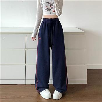 YF4150-图片色春秋新款撞色拼接阔腿裤 休闲港味宽松小个子卫衣裤