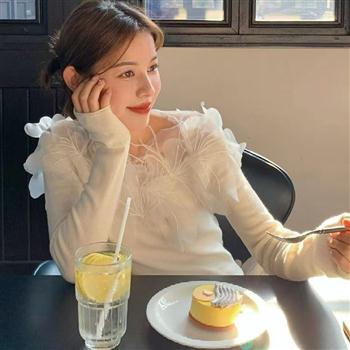 YF4140-图片色甜美时尚荷叶边镂空套头小众设计复古别致蕾丝衫