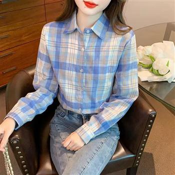 YF4020-图片色OL通勤秋冬长袖翻领宽松大码复古格子衫 小众港风ins上衣