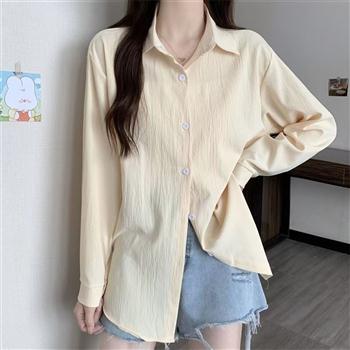 YF4031-(3色入内)简约时尚纯色甜美长袖翻领小众别致大码春秋新款衬衫