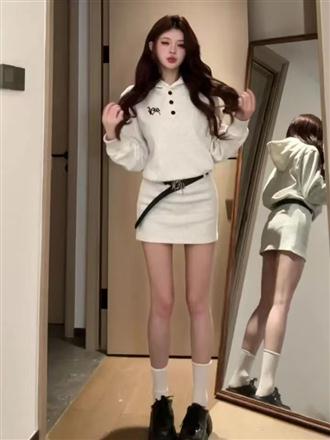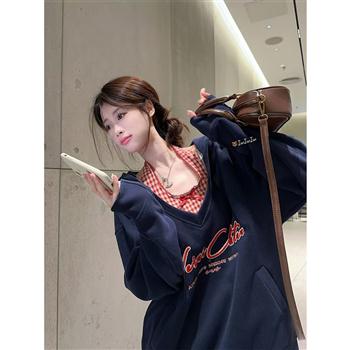 YF4032-(2色入内)港式慵懒风字母印花V领两件挂脖连帽卫衣大码外套 新款运动套