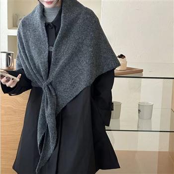 YF4051-(3色入内)秋冬破洞毛呢保暖披肩 甜美羊毛呢子小众气质坎肩蓬蓬衫