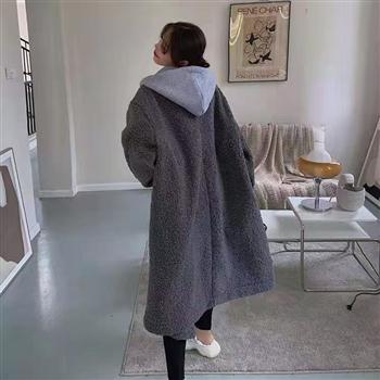 YF3909-(3色入内)加大码长袖连帽羊羔绒摇粒绒中长款拉链防风保暖大衣外套