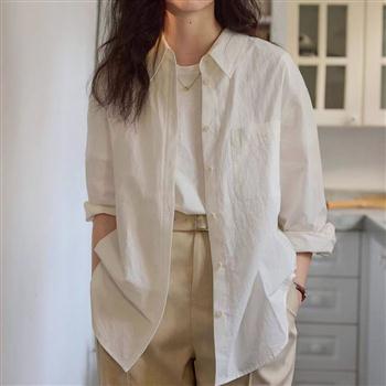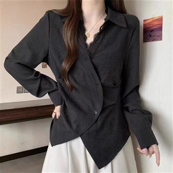 YF3943-(2色入内)法式长袖褶折不规则复古个性宽松大码简约新款上衣潮